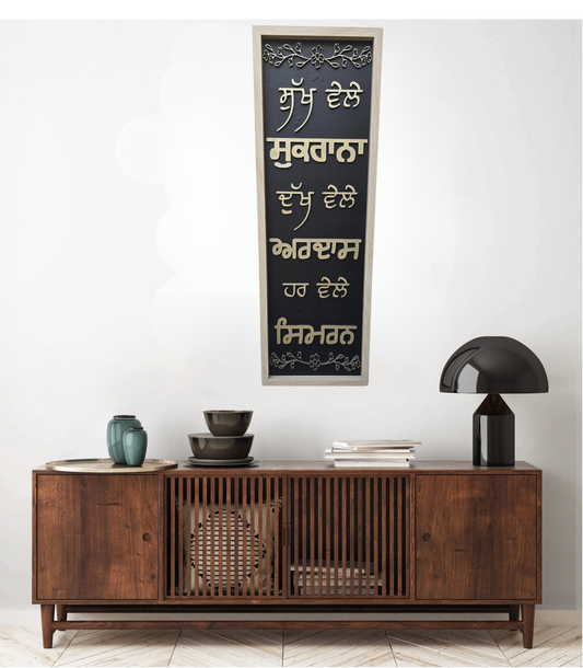 Handcrafted 3D Wooden ਸੁੱਖ ਵੇਲੇ ਸੁਕਰਾਨਾ, ਦੁੱਖ ਵੇਲੇ ਅਰਦਾਸ, ਹਰ ਵੇਲੇ ਸਿਮਰਨ