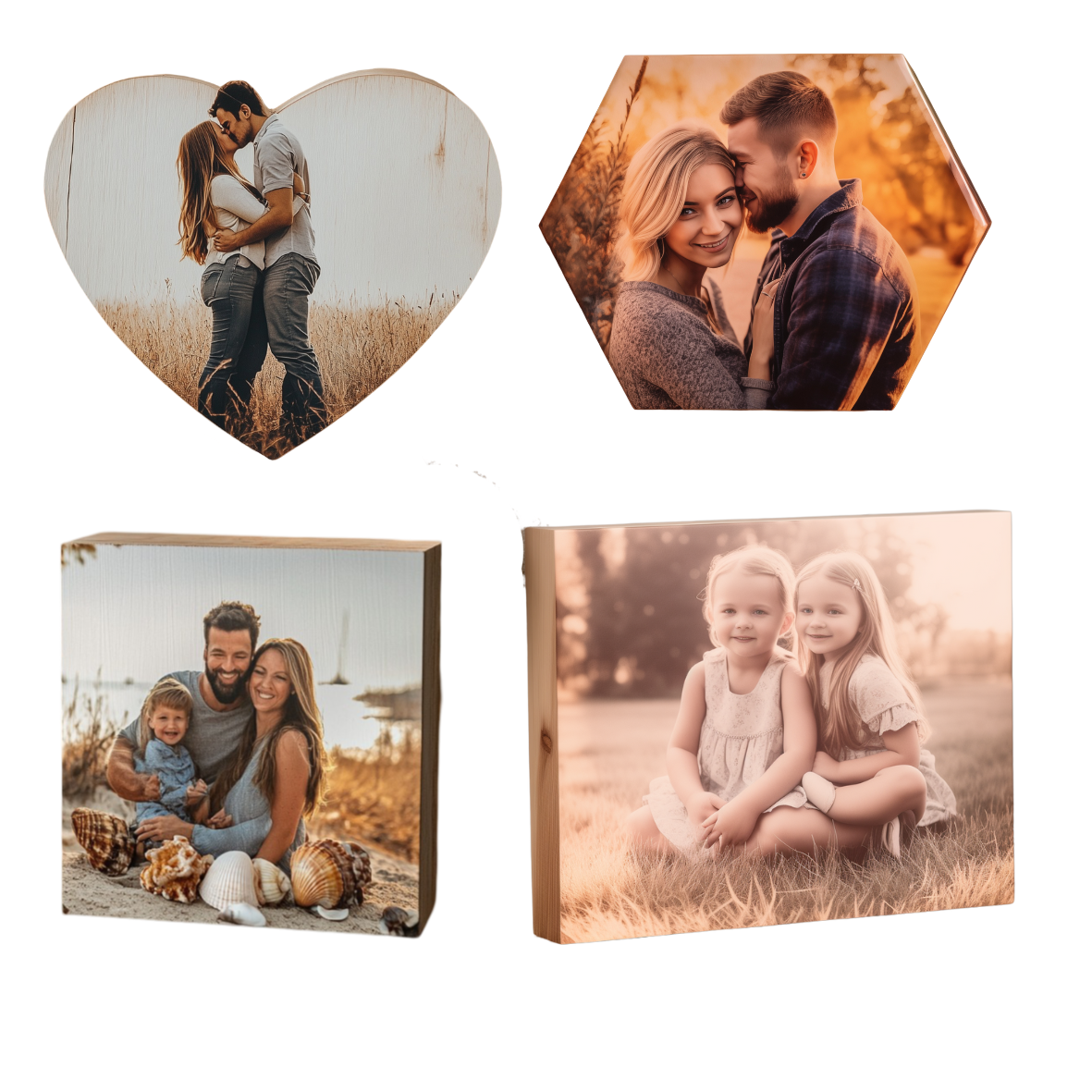 Each block is entirely unique! The natural grain and subtle variations in the wood make every piece one of a kind, adding a distinct charm to your artwork. Unlike synthetic materials, pine wood carries its own natural beauty, with small imperfections that enhance its character and individuality—perfect for showcasing your cherished moments.
