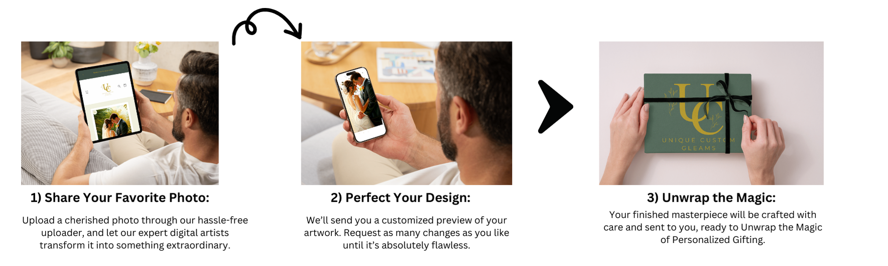 1️⃣ Upload Your Photo & Names – Submit your image along with any names or text you'd like included.