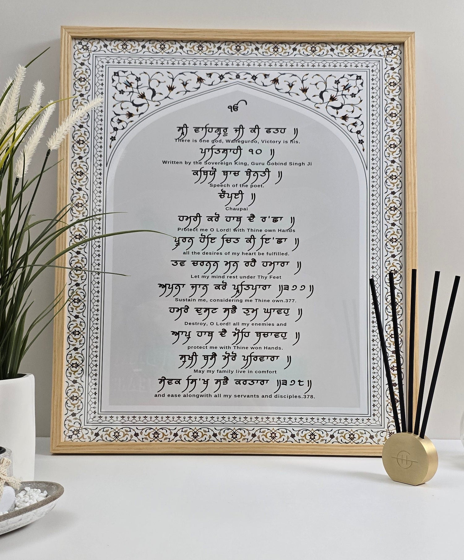 Bring peace and divine assurance into your home with this elegant set of three MDF-framed Gurbani artworks, thoughtfully designed to inspire faith and tranquility. This sacred combo features: